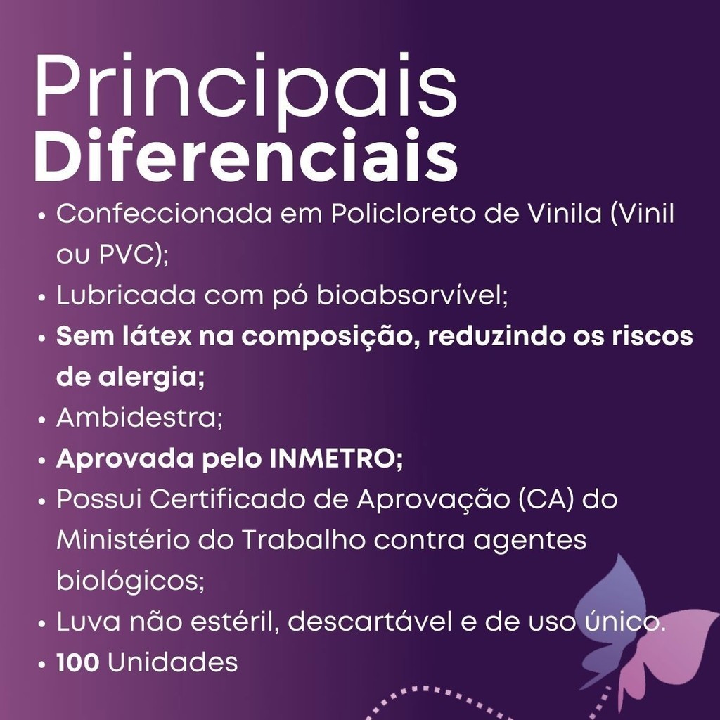 CAIXA COM 100 UNIDADES DE LUVA DE VINIL COM PÓ - DESCARPACK TAMANHO: M A Luva de Vinil para Procedimentos Não Cirúrgicos com Pó da Descarpack é uma luva descartável sintética, desenvolvida para a proteção das mãos dos profissionais de diversas áreas. A luva é voltada para uso durante a realização de tarefas curtas pouco abrasivas, e sempre que não houver contato com fluidos orgânicos. CARACTERÍSTICAS E BENEFÍCIOS: - Confeccionada em Policloreto de Vinila (Vinil ou PVC); - Lubricada com pó bioabsorvível; - Sem látex na composição, reduzindo os riscos de alergia; - Ambidestra; - Aprovada pelo INMETRO; - Possui Certificado de Aprovação (CA) do Ministério do Trabalho contra agentes biológicos; - Luva não estéril, descartável e de uso único. INDICAÇÕES: - Trabalhos leves; - Limpeza e manutenção; - Manuseio de alimentos. ITENS INCLUSOS: 01 Caixa com 100 unidades de Luva de Vinil com pó - Descarpack OFERTA POR TEMPO LIMITADO! APROVEITE E GARANTA O SEU! DÚVIDAS? FAÇA SUA PERGUNTA ABAIXO, SERÁ UM PRAZER LHE ATENDER!