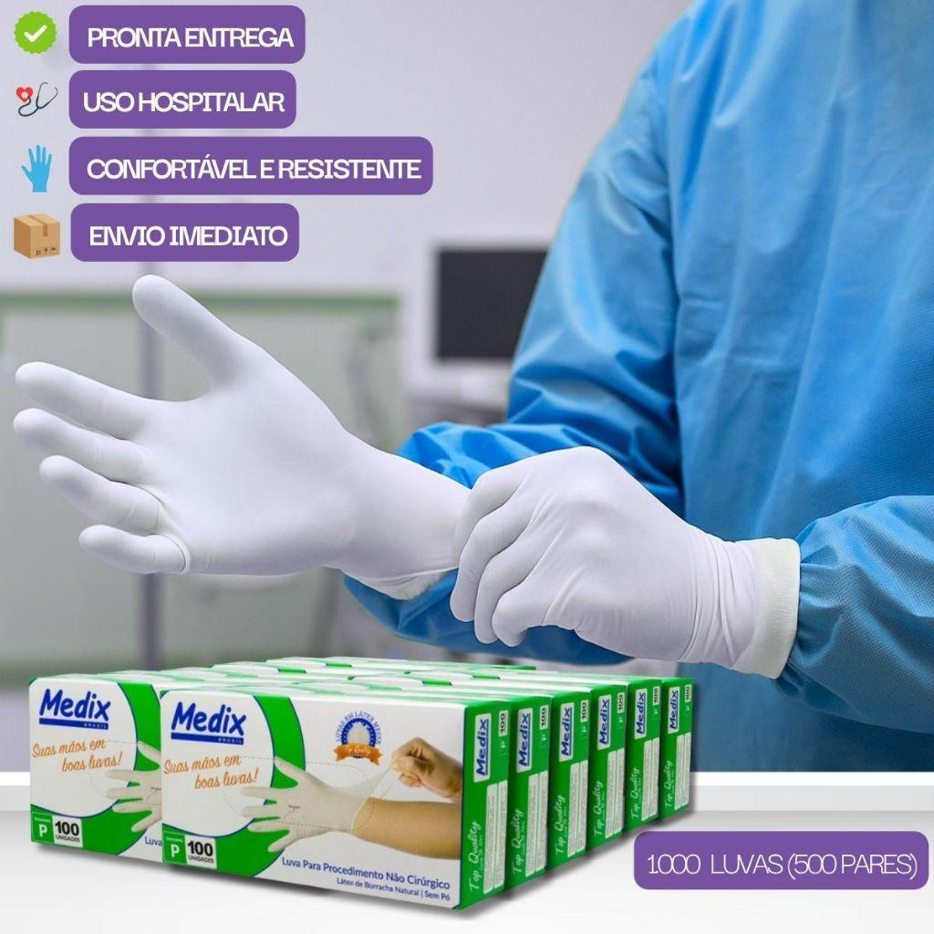 Luva Descartável Sem Pó Latex Medix 1000un Profissional