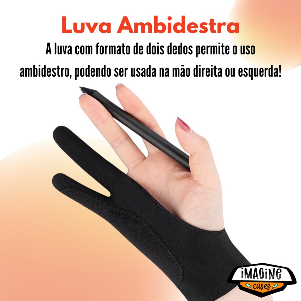 Luva Para Desenho Profissional 2 Dedos – Canhoto e Destro A Luva Profissional para Desenho Digital e Tradicional é ideal para você que busca traços suaves e precisos no seu iPad, tablet, mesa digitalizadora ou Wacom! Feita em Lycra de alta qualidade, ela diminui o atrito da mão na tela ou papel, evitando toques acidentais e sujeira. Perfeita para artista digital e tradicional! Ficha Técnica: - Material: Lycra macia e respirável - Tamanho: Único (super confortável!) - Formato: 2 dedos (protege mindinho e anelar) - Serve para: iPad, Tablet, Wacom, Sketch, papel e outras mesas - Funções: Menos atrito, zero toque fantasma, sem suor na tela - Use como quiser: Mão direita ou esquerda (ambidestra) - Limpeza fácil: Anti-incrustante, tela e papel sempre limpos - Contém: 1 luva para desenho (unidade) Por que escolher a nossa Luva? - Desenhos mais fluidos e precisos - Chega de ativar funções sem querer na tela! - Use até canetas sem palm rejection sem se preocupar - Para tela, papel e mesa digitalizadora: TUDO EM UM! - Conforto o dia todo, não importa a mão - Sua arte sempre limpinha, sem manchas de suor Desenhe com mais liberdade e conforto com a nossa Luva Profissional para iPad, Tablet e Papel! Sua mão vai deslizar suavemente para um controle total! Na Imagine Cases, qualidade e praticidade são prioridade pra você! O que você vai receber: - 1 Luva de Dois Dedos para Desenho (tamanho único, cor preta)