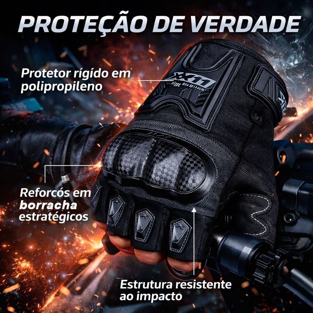 Luva Blackout 2 1/2 DEDO Masculina X11 – Evolução em Proteção e Versatilidade A Luva Blackout 2 1/2 DEDO da X11 chega para dar continuidade ao sucesso de um dos modelos mais vendidos e reconhecidos entre os motociclistas brasileiros. Agora com um novo protetor de articulação, mais moderno e com melhor performance, ela mantém o DNA que revolucionou o mercado de luvas para moto no Brasil. Projetada para quem busca proteção, leveza e versatilidade com excelente custo-benefício, a Blackout 2 1/2 DEDO é perfeita tanto para o uso urbano diário. Principais características: • Modelo de cano curto – ideal para maior mobilidade e conforto no dia a dia; • Construção em tecido poliéster – leveza, resistência e respirabilidade; • Protetor rígido em polipropileno injetado nas articulações – proteção reforçada contra impactos; • Reforços em borracha na palma, dedos e dorso da mão – maior segurança nas áreas de contato e atrito; • Reforço entre os dedos – mais durabilidade em pontos críticos de desgaste; Benefícios que fazem a diferença: • Leve, arejada e com ótimo caimento – ideal para diferentes climas e estilos de pilotagem; • Versatilidade incomparável – perfeita para uso urbano, estrada ou pequenas viagens; • Excelente custo-benefício – proteção de verdade com preço acessível. A Luva Blackout 2 X11 é um verdadeiro clássico atualizado: proteção, conforto e modernidade reunidos em um único modelo. Seja no dia a dia ou em longas rotas, ela é a escolha de milhares de motociclistas por todo o Brasil. X11 – Proteção inteligente, performance de verdade. Itens inclusos: • 01 Par Luva Blackout 2 1/2 DEDO Masculina Preta