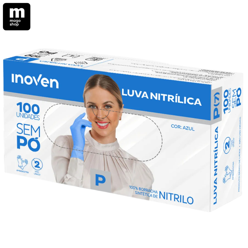 Luva Nitrílica Azul Sem Pó Inoven x 100 P M G GG