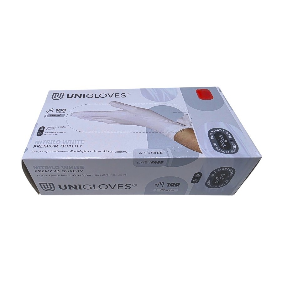 LUVA NITRÍLICA DESCARTAVEL UNIGLOVES BRANCA WHITE – 100 UNID