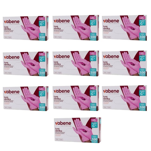 Luva Nitrílica Rosa Sem Pó Vabene Kit com 10 Caixas – Tamanho PP; P; M; G