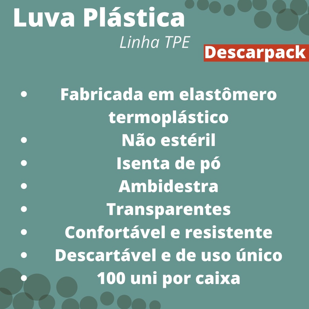 | Luva Plástica Descartável Viniflex TPE Descarpack com 100 unidades este produto | R$ 13,50 | 7% | 5.0/5 | 8 |