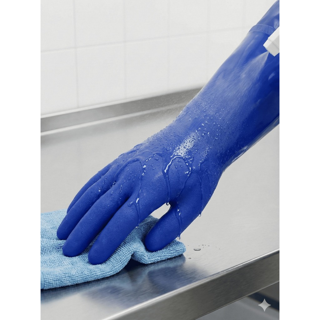 Luva BLUE PVC (até 66 cm) A Luva BLUE PVC é uma luva de segurança desenvolvida para quem precisa de proteção confiável contra líquidos e produtos químicos, sem abrir mão do conforto no uso diário. Produzida em PVC com suporte têxtil de algodão, ela oferece melhor sensação de uso e ajuda a reduzir incômodos em rotinas longas. Conta com tratamento de superfície antiderrapante na palma e no dorso da mão, garantindo mais aderência e firmeza ao segurar ferramentas, peças, galões e objetos úmidos. A família BLUE PVC possui 4 opções de altura (comprimento), podendo chegar a 66 cm, ideal para quem busca maior proteção no antebraço e braço, de acordo com o tipo de atividade. Aplicações indicadas: Manuseio de produtos químicos e líquidos Limpeza de equipamentos e ambientes Manutenção de máquinas e equipamentos Operação de prensas e serviços industriais Atividades com risco de respingos e umidade Destaques do produto PVC resistente + forro de algodão (absorve o suor e aumenta o conforto) Antiderrapante na palma e dorso (mais controle e segurança) Opções de comprimento para maior proteção do braço (até 66 cm) Ideal para uso profissional em rotinas intensas