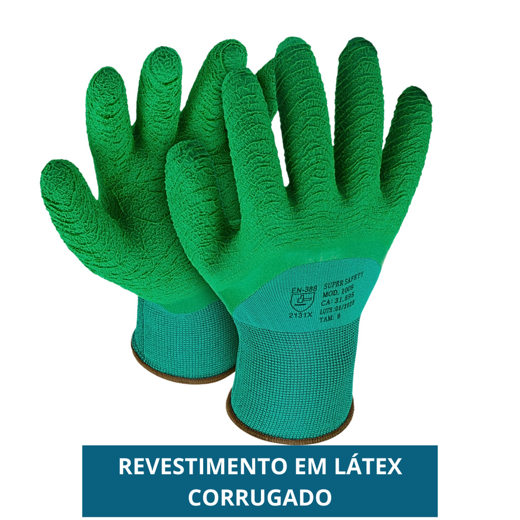 Luva Revestida Látex Corrugado Verde SS 1009 Banhada Coleta Jardinagem Reciclagem Pedreiro Epi