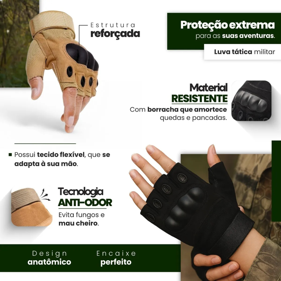 Luva Tática Meio Dedo Com Proteção Ciclismo Motoboy Paintball
