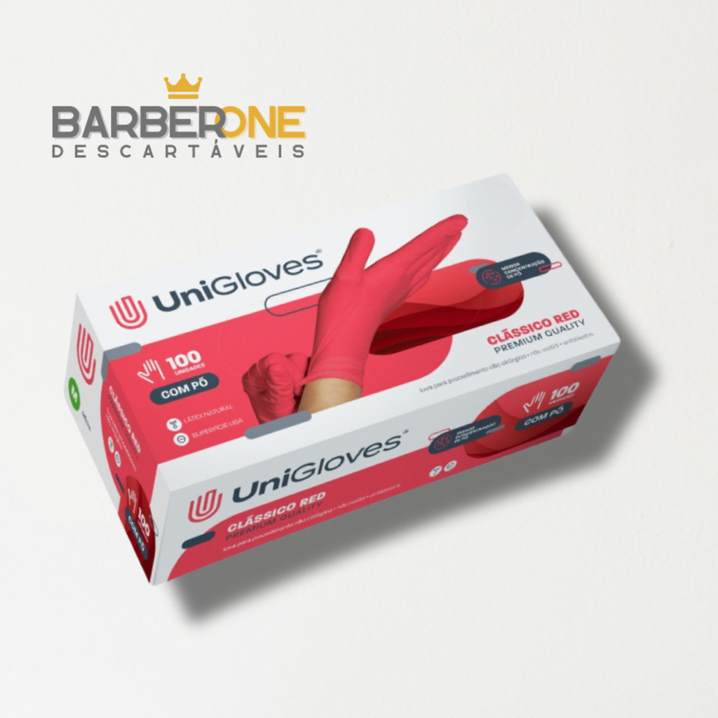 | LUVAS DE LATEX COM POUCO TALCO UNIGLOVES CLASSICO RED - CAIXINHA CO... este produto | R$ 39,95 | — | 5.0/5 | — |