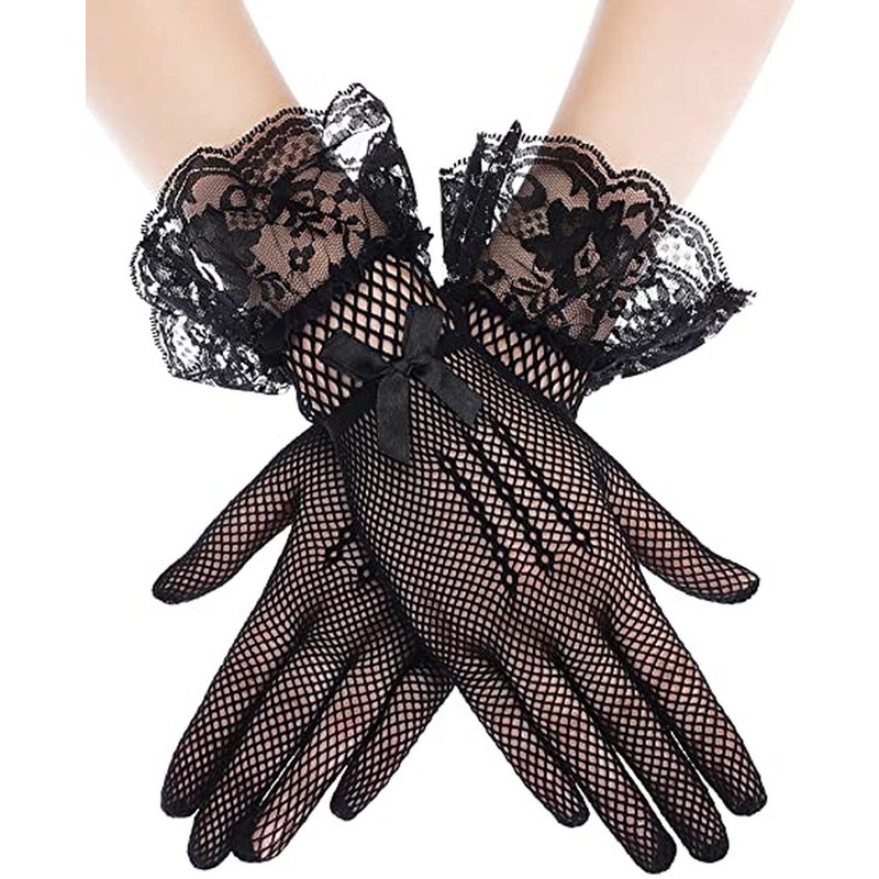Luvas De Renda Curta Feminina Elegante/Nova Bainha Branca Preta Rede De Peixe/Mulheres Mittens/Para Festas Jantar