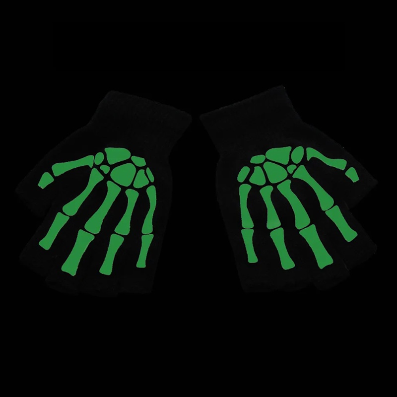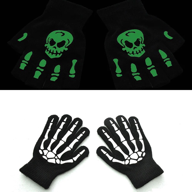 Luvas Luminosas De Halloween Para Crianças Adultas Dedo Cheio Com Esqueleto