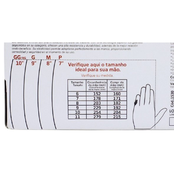 Luva Viniflex é utilizada na manipulação de alimentos e em procedimentos estéticos. Tem em sua composição a Borracha Termoplástica, e por ser bem fina, possui alta sensibilidade em seu uso. Não possui virola (ou bainha) e é mais soltinha que a Luva de Vinil, mas ainda sim se adapta bem e é super maleável e muito suave na hora de usar. A Viniflex é a melhor alternativa custo-benefício para substituir as Luvas de Látex e Vinil. Sua qualidade de solda praticamente elimina o risco de rompimento. Ela é descartável e minimiza o risco de contaminação por vírus e bactérias durante o manejo de alimentos. A Luva Viniflex é impermeável e econômica, é livre de pó e de látex, é inodora, atóxica e hipoalergênica. Possui um toque de seda confortável que proporciona alta sensibilidade ao tato. A Luva Viniflex NÃO É de vinil. APLICAÇÕES: A Luva Viniflex é indicada para o segmento alimentício, podendo ser utilizada em padarias, cozinhas industriais, food services (food trucks, lanchonetes e bares), como também para o segmento estético, se tornando ideal para o uso em clínicas estéticas, podologia salões de beleza. Também é indicada para o uso doméstico. ESPECIFICAÇÕES: Tamanhos disponíveis: P | M | G | GG Composição: TPE – Elastômero Termoplástico Cor: Preto Quantidade: 100 unidades Registro CA: 44842 Formato: Ambidestro Uso: Descartável CARACTERÍSTICAS: • Resistente • Livre de pó e látex • Inodora e Atóxica • Hipoalergênica • Alta sensibilidade ao tato • Toque de seda • Impermeável