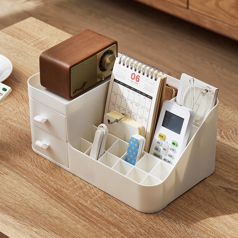 Lux Gaveteiro com gavetas multi uso branca cosmeticos maquiagem Especificação: Material: PP Tamanho: 27.50x17x12.5cm Cor: BRANCO Características: 1. Dimensões Aproximadas Exterior: 27.50x17x12.5cm. Feito de PP durável. 2. Organize-se. Mantém os cuidados pessoais cosméticos de maquiagem e mais em fácil acesso 3. 9 compartimentos incluindo duas gavetas separadas e organizar suas escovas, garrafas, cosméticos e muito mais 4. Uso multiuso. Também faz um ótimo organizador para material de escritório, material de arte e qualquer coisa entre 5. Fácil de limpar, use sabão neutro e água morna. Duas Gavetas Removíveis.