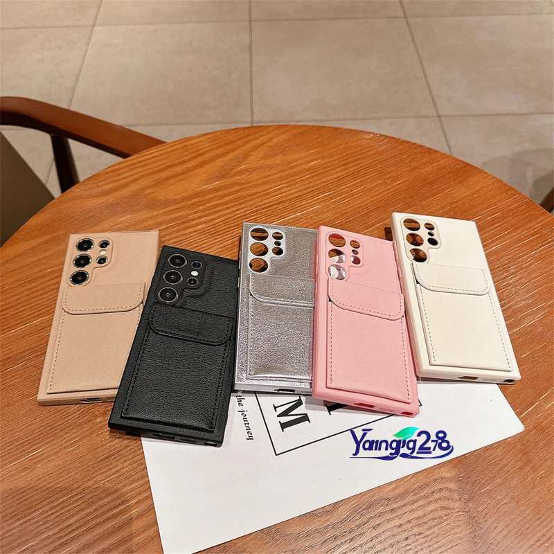 Luxo À Prova De Choque Couro Silicone Carteira Titular Do Cartão Caso Telefone Para Samsung S24 Ultra S23 S22 S21 Capa P
