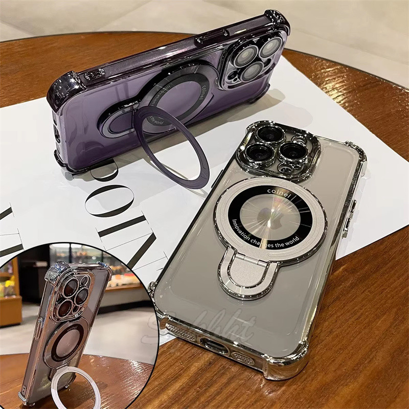 Luxo Airbag Chapeamento Magsafe Caso Para iPhone 15 16 11 12 13 14 Pro Max Plus Suporte Magnético Capa Transparente
