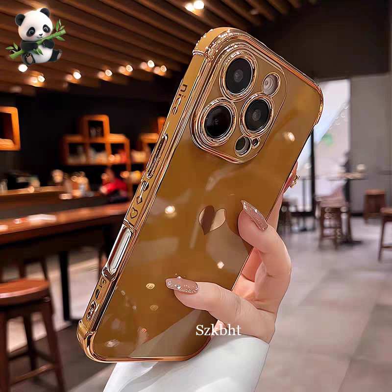 Luxo Chapeamento Amor Coração Silicone Caso Para iPhone 16 15 14 13 12 11 17 Pro Max Macio À Prova De Choque Capa