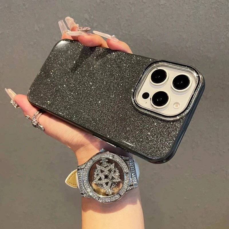 Luxo Glitter Capa Capinha Silicone Anti-impacto Para IPhone 14 15 16 17 13 11 12 XR Ar Normal Pro Max Caso De Telefone