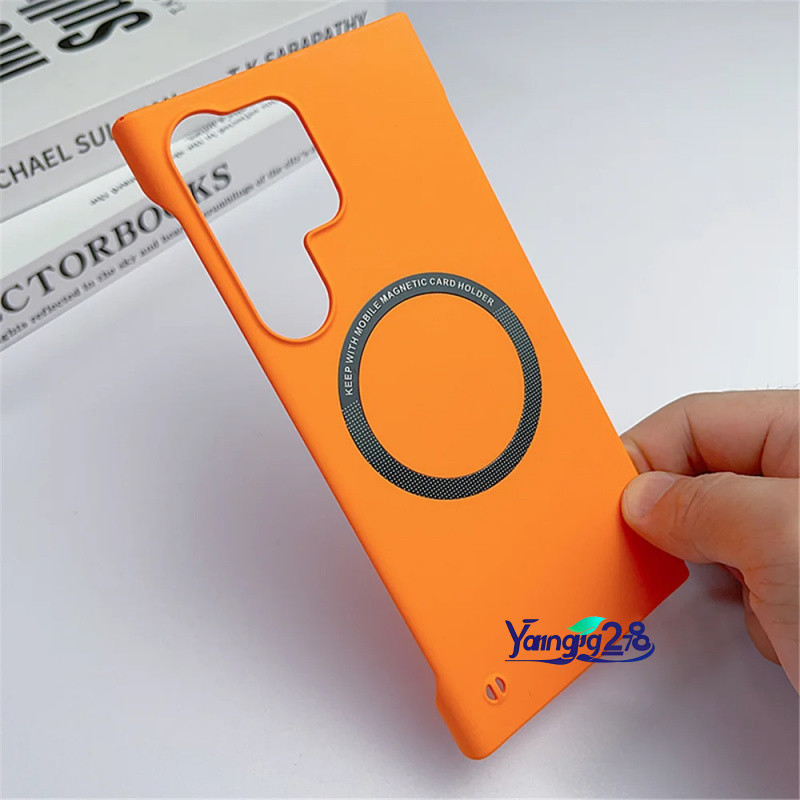 Luxo Ultra Fino Sem Moldura Magnético Para Magsafe Caso Samsung S25 S24 S23 S22 S20 FE Duro PC Fosco Capa