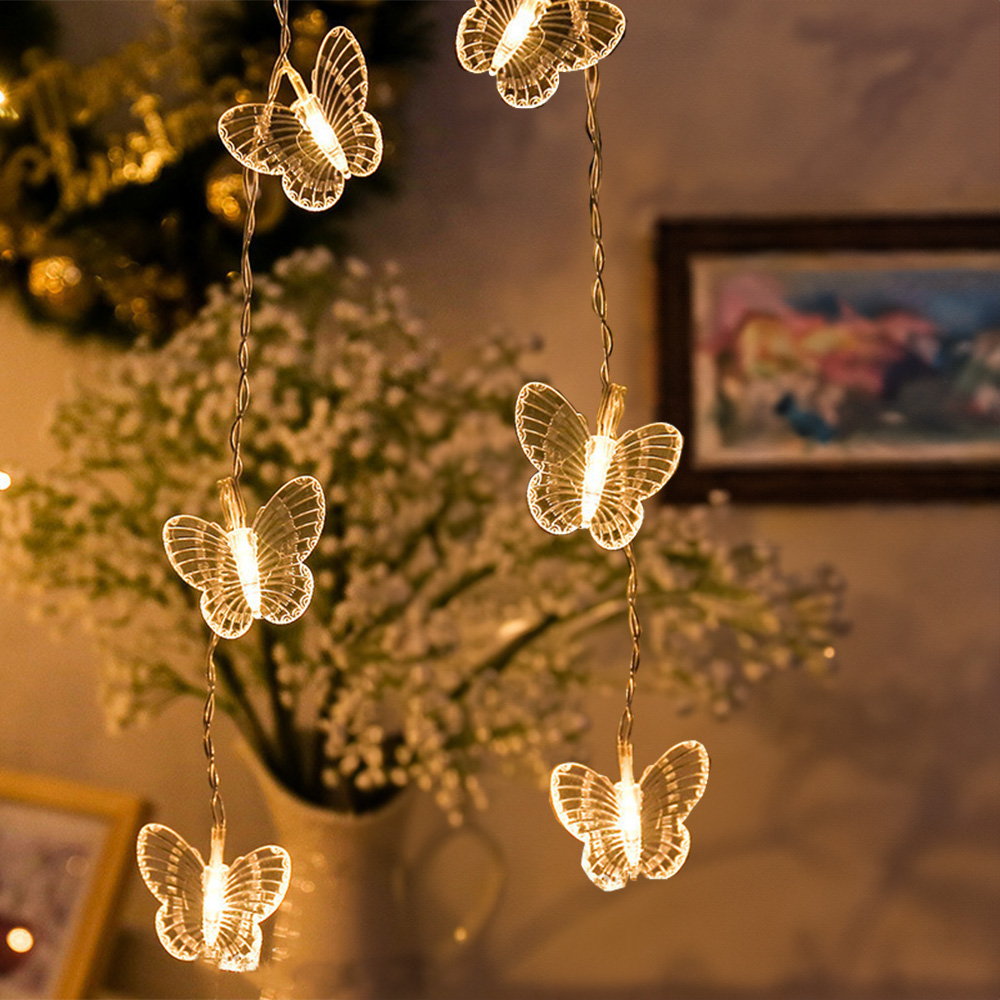 Luz De Corda De Fada Borboleta Operada Por Bateria 3M 20LED-Decorativa Interna E Externa Para Casa , Quarto , Festa , Ad