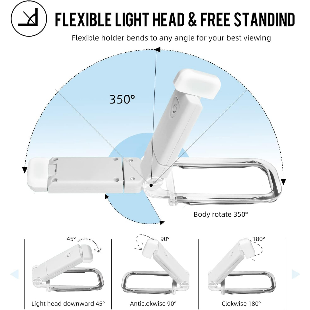 🌟【Bem-vindo à loja new_life】🌟 Luz De Leitura De Livros De Leds Brilho Ajustável USB Clip De Proteção Dos Olhos Portátil Bookmark Light Destaques : [Luz Flexível do Livro] A lente LED pode girar 90° em direção ao relógio e ao contrário do relógio, e 45° para baixo; O parêntese flexível 315 ° pode ser inclinado a qualquer ângulo, permitindo que você alcance a melhor experiência de visualização. Não há necessidade de reposição constante das luzes [USB rechargeable] Não são necessários cabos ou baterias adicionais, pode ser conectado diretamente em um computador, banco de energia, adaptador, carregador de carro, ou socket USB para carregar. Completamente carregado por cerca de 1,5 horas e pode durar cerca de 8 horas (no ambiente mais brilhante). [2 níveis de brilho] 3000K branco quente, luz LED pode ajustar 2 níveis de brilho (100%, 50%) através de botões; A proteção dos olhos suave e brilhante cria um espaço de leitura privado para você sem perturbar os outros. 1,38 gramas, compactos e ligeiros, muito adequados para ser pegados em um livro ao ler à noite; Pode ser completamente dobrado plano, ultra fino, portátil e adequado para ler no banco traseiro de aviões, comboios ou carros. Nota: Devido ao monitor diferente e efeito de luz, a cor real do item pode ser um pouco diferente da cor mostrada nas fotos. -Obrigado! Por favor aguarde 0-1cm medio desvio devido medio manual Especificação: Tamanho do produto: 10,5cm * 4,6cm * 1,3cm Cor: Branco Peso individual do produto: 44,2G Material: Plastico Descrição: Luz de livro rechargeable apropriada para leitura na cama, clip portátil sobre luz de leitura LED com 3 cores ambras e 3 níveis de brilho ajustados, apropriado para atenção ocular, entusiastas de livros de longa duração, crianças Lista de pacotes: Uma luz de clip de cartão USB