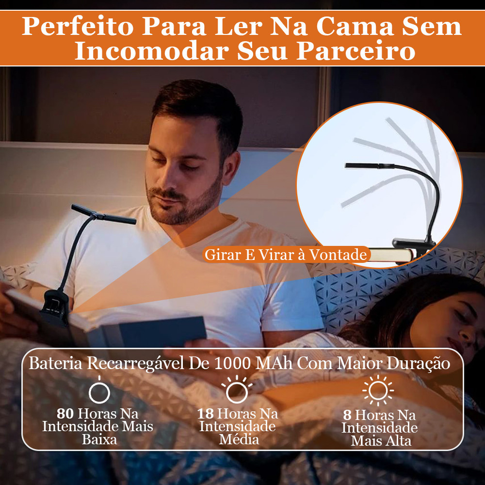 Luz De Leitura Recarregável Luminaria Led De Livro Com Clipe