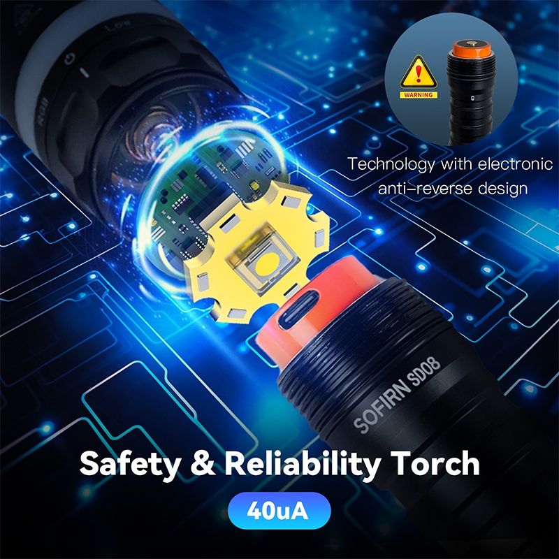 Luz De Mergulho Sofirn SD08 3200 Lúmens , Recarregável USB-C , Liga/Desliga , Equipamento Subaquático Pro