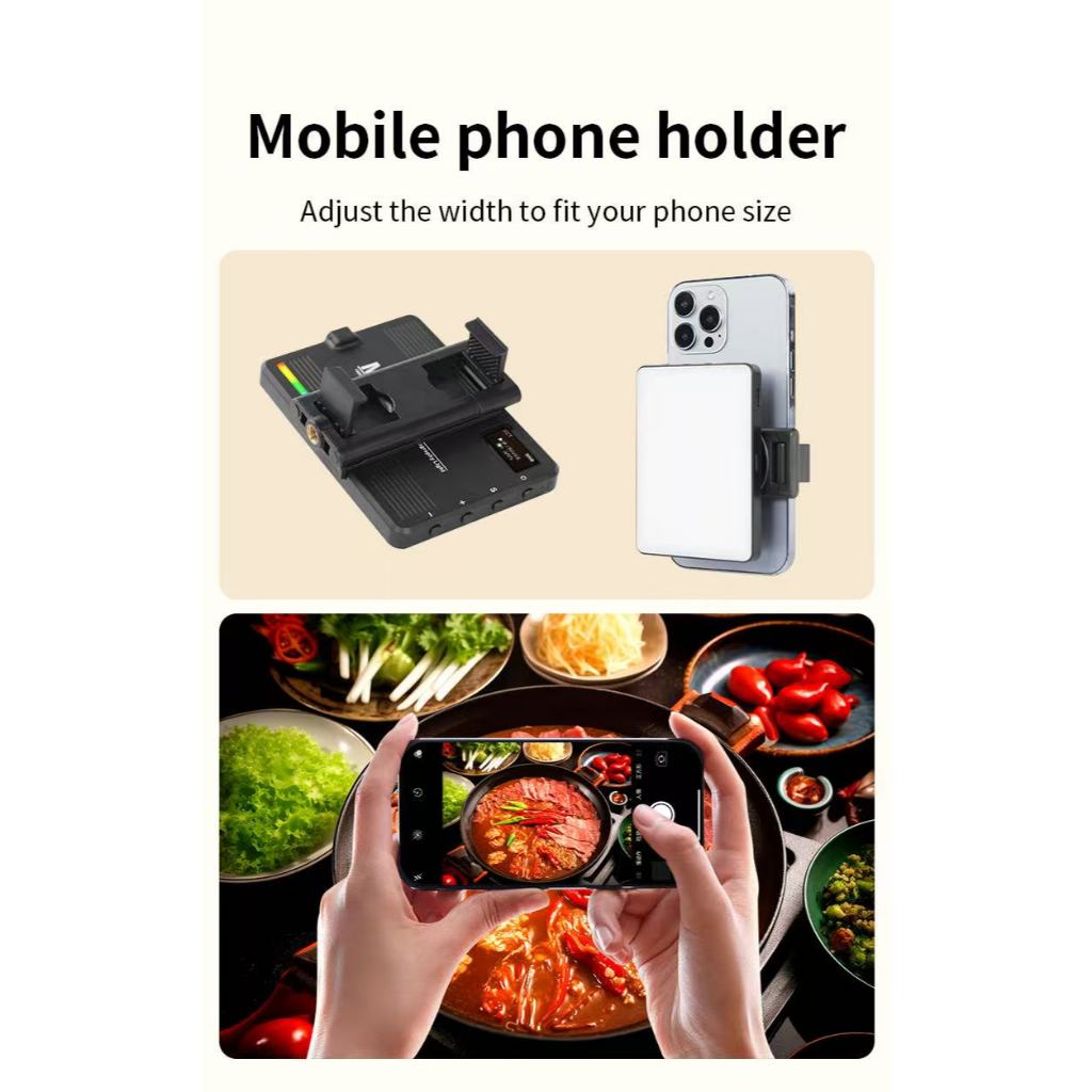 A mais recente luz de preenchimento LED que suporta telefones celulares, tablets e laptops e vem com um clipe. Bateria de lítio embutida de 1500mAh para chamadas de zoom, captura de fotos, vídeo, trabalho remoto, transmissão ao vivo, selfie, aprimorar a imagem pessoal. Um kit de luz de preenchimento pode ajudar a aumentar sua presença on-line e impressionar seu chefe e colegas. Leve e portátil, é conveniente iluminar seu rosto e iluminar sua pele durante videoconferências, videochamadas, reuniões de zoom, trabalho remoto ou transmissões ao vivo. Bateria de longa duração, bateria de lítio embutida de 1500mAh e 120 esferas de LED podem fornecer horas de iluminação sem fio para videoconferências e cursos on-line. Além disso, você pode manter a luz totalmente carregada por um dia inteiro de uso sem se preocupar com a falta de bateria. Especificação: Escopo principal de aplicação: luz de preenchimento de gravação ao vivo de vídeo para celular. Suporta telefones celulares, tablets, laptops. Cor: preto Potência da fonte de luz: 5W Função: bateria embutida, ajuste conveniente de vários níveis, temperatura de cor dupla, multicâmera Voltagem: 3,7V Como usar: portátil Material principal: ABS Tempo de carregamento: 2,5 horas Número de grânulos da lâmpada: 120PCS LED brilhante Interface de carregamento: TYPE-C Temperatura de cor: 3000K-9900K Ângulo de iluminação: 120 graus Valor de renderização de cor: maior que 95 Obrigado pela atenção.