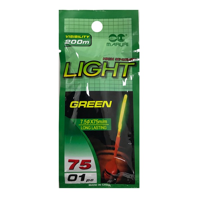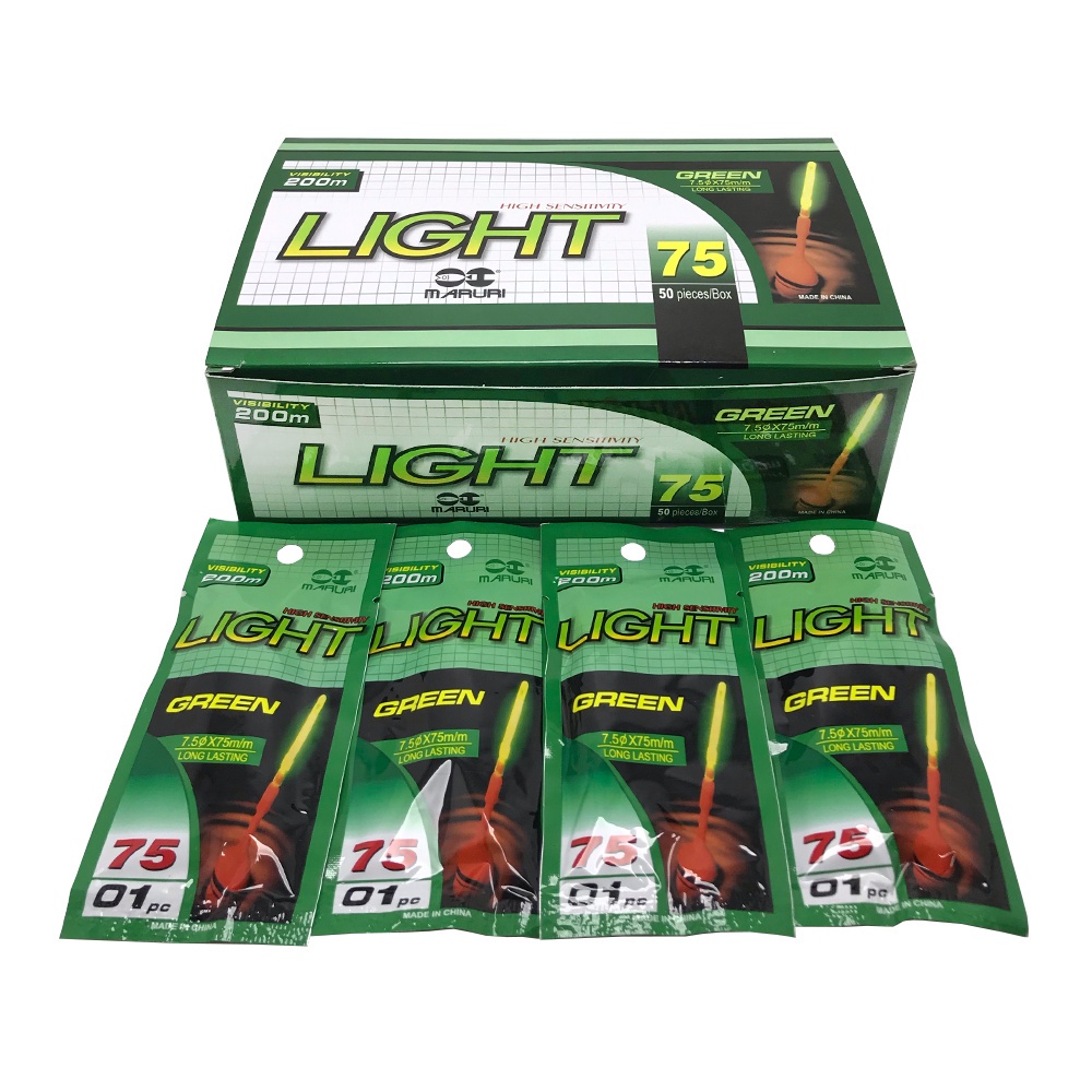 Green Light Maruri, foi feito para voc que gosta de pescar em perodos nortuno peixes como Espada, Tilapia, Corvina, entre outros. O Green Light basicamente um basto luminoso que se encaixa na bia para que voc consiga enxergar de longe a sua bia no escuro. Feito com Plstico ABS, Perxido de Hidrognio, Oxalato e Corante. COMO USAR: Curve o basto suavemente at ouvir o som. Agitar bem para misturar os produtos qumicos. ESPECIFICAES: Marca: Maruri Modelo: Green Light Visibilidade: 200m Tamanho: 7,5cm Quantidade: 1 Cartela (Cada cartela contm 1 pea de Star Light)