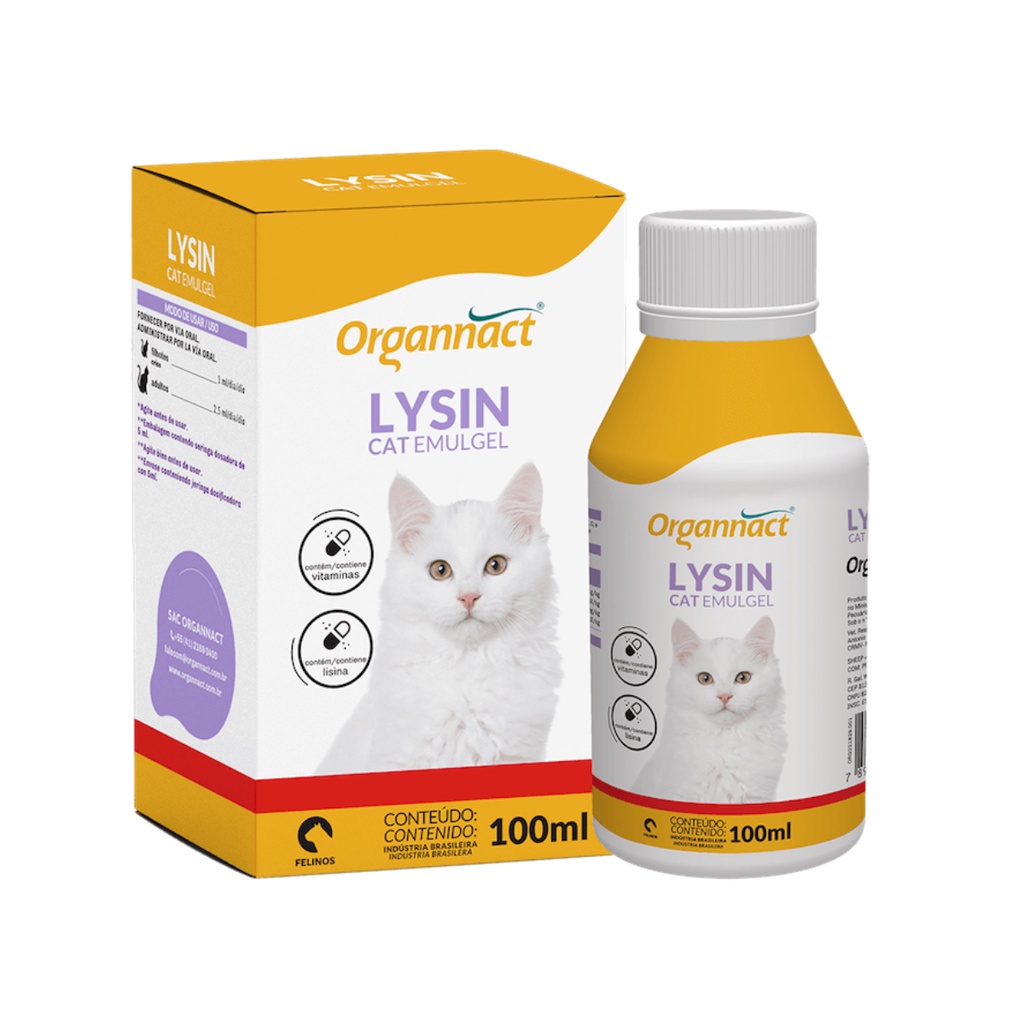 Lysin Cat Emulgel 100ml Organnact Vitamina Lisina Gatos Miau