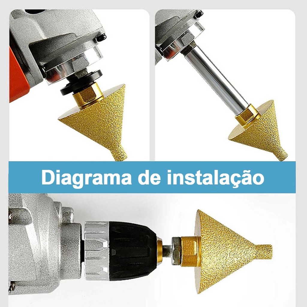 Lista de embalagem: 1 * broca de chanfro de diamante Cor: dourado Material: diamante + aço com alto teor de manganês EXCELENTE DESEMPENHO DE CORTE E RESISTÊNCIA À ABRASÃO: os bits de chanfro de diamante são feitos de partículas de diamante de alta qualidade incorporadas em uma matriz de metal durável. Esse revestimento de diamante garante dureza superior, longevidade e excelente desempenho de corte. Interface rosqueada estendida para maior durabilidade e resistência ao desgaste. O diamante tem excelente resistência ao desgaste FÁCIL DE INSTALAR: esta broca para chanfrar foi projetada para ser montada no eixo de uma esmerilhadeira angular. A broca chanfrada de diamante é fácil de instalar e pode ser fixada com segurança na esmerilhadeira angular para garantir um desempenho de corte estável e preciso. Design chanfrado: reduz o estresse e facilita o escareamento, o esmerilhamento e o polimento de furos existentes com uma broca chanfrada. USO DIRETO: broca chanfradora de diamante para esmerilhadeira angular Cera de resfriamento incorporada, uso a seco, sem necessidade de adicionar água ao esmerilhar, mais fácil de
