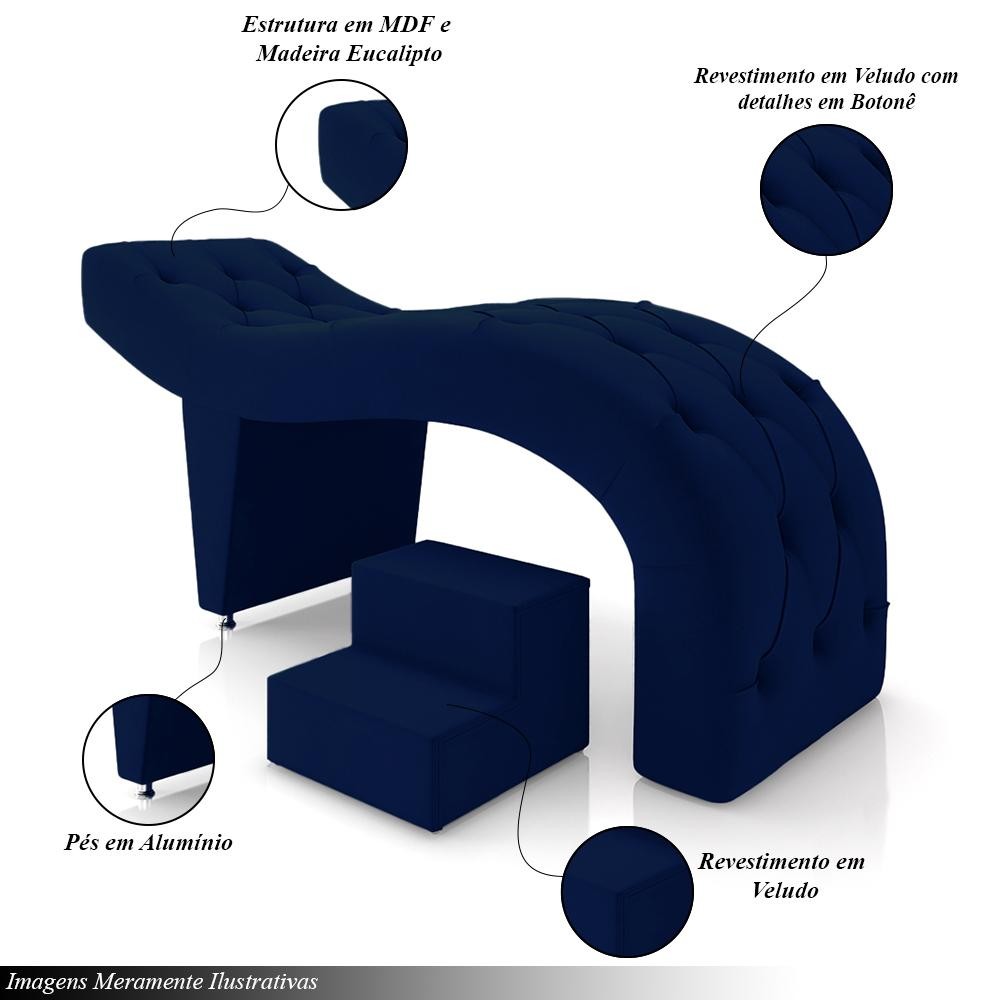 Maca de Estética para Massagem Cílios Fixa Lash Estofada com Escada Veludo Azul G83 - Gran Belo