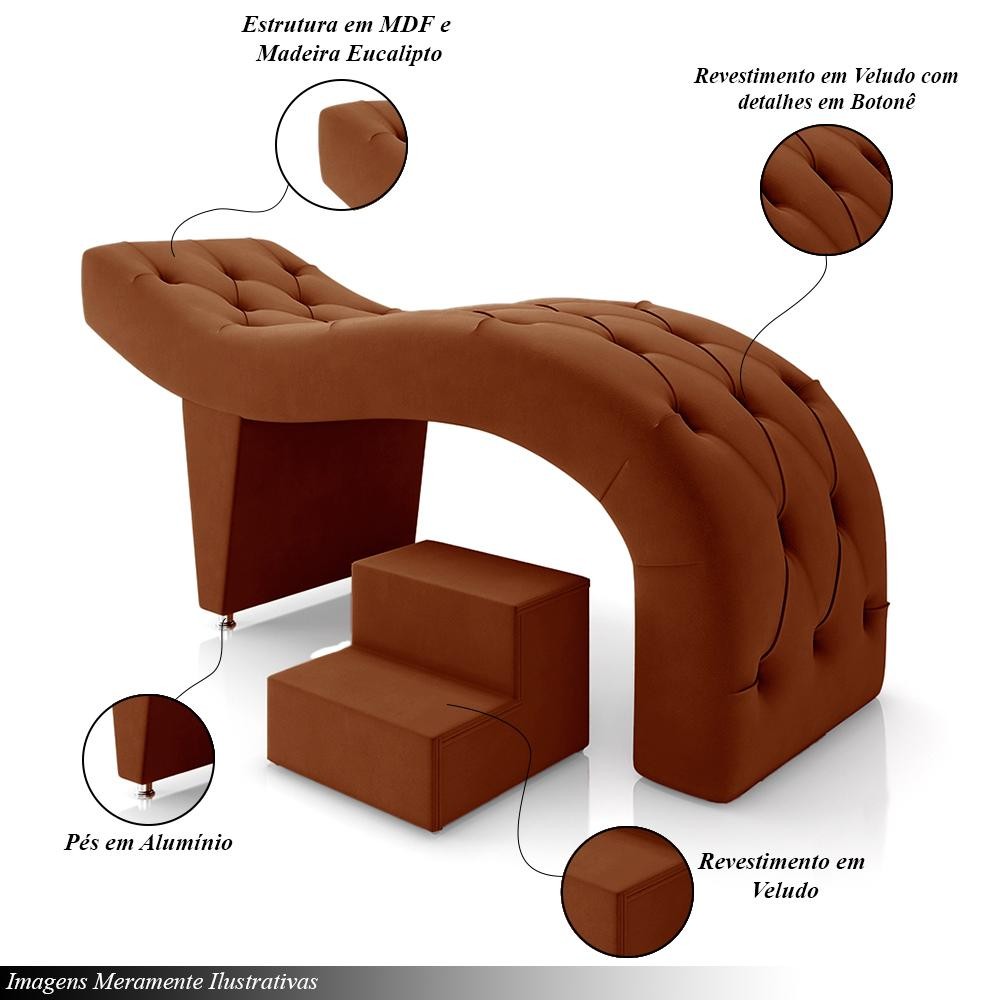 Maca de Estética para Massagem Cílios Fixa Lash Estofada com Escada Veludo Terracota G83 - Gran Belo