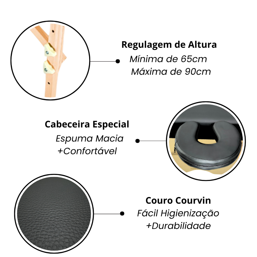AQUI VOCÊ PODE CONFIAR: SANTA FÉ MACAS 13 ANOS DE TRADIÇÃO E QUALIDADE EM MACAS PROFISSIONAIS, COM MAIS DE 250 MIL UNIDADES VENDIDAS COM NOTA MÁXIMA DE APROVAÇÃO ENTRE OS PROFISSIONAIS. Maca Portátil Standard Reclinável com Regulagem de Altura RA03 - Santa Fé Macas A Maca Portátil Standard Reclinável com Regulagem de Altura é o mais novo lançamento da Santa Fé Macas, com possibilidade de ajustar sua altura de 60cm a 90cm, toda reforçada com cabo de aço em sua estrutura, o que possibilita o suporte de até 300Kg de peso distribuído. Além de contar com um encosto regulável que irá auxiliar em seus procedimentos. Eleve já o patamar do seu espaço de trabalho a um outro nível com essa Maca Portátil Standard Santa Fé Macas! Características da Maca Portátil Standard Reclinável com Regulagem de Altura: - Medidas da Maca montada (CxLxA): Com Apoio de Face 205x60cm e sem Apoio de Face 180x60cm - Com Regulagem de Altura Possibilidade de ajuste de 60cm a 90cm - Portátil, Leve e Prática - Com Encosto Reclinável - Com alça e para facilitar o transporte da Maca - Espuma D28 Muito mais Conforto - Revestimento em Courvin Fácil Higienização - Suporta até 300Kg de peso distribuido. Itens Extras Incluso - Incluso Apoio de Face - Incluso Encosto Reclinável Especificações técnicas Marca: Santa Fé Macas Modelo: Maca Portátil Standard Reclinável com Regulagem de Altura Medidas da Maca montada (CxLxA): Com Apoio de Face 205x60cm e sem Apoio de Face 180x60cm Medidas da Regulagem de Altura: Mínima de 60 cm e Máxima de 90 cm Suporte de Peso: Até 300Kg suportados de peso distribuido Montagem: Extremamente Prática e Simples, basta destravar o fecho e abrir os pés até as suas extremidades. Com Garantia: 1 ano