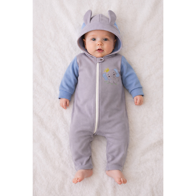 Macacão Bebê com Capuz e Orelhinhas Elefante Bordado Inverno Unissex Aconchegante Roupas de Bebê
