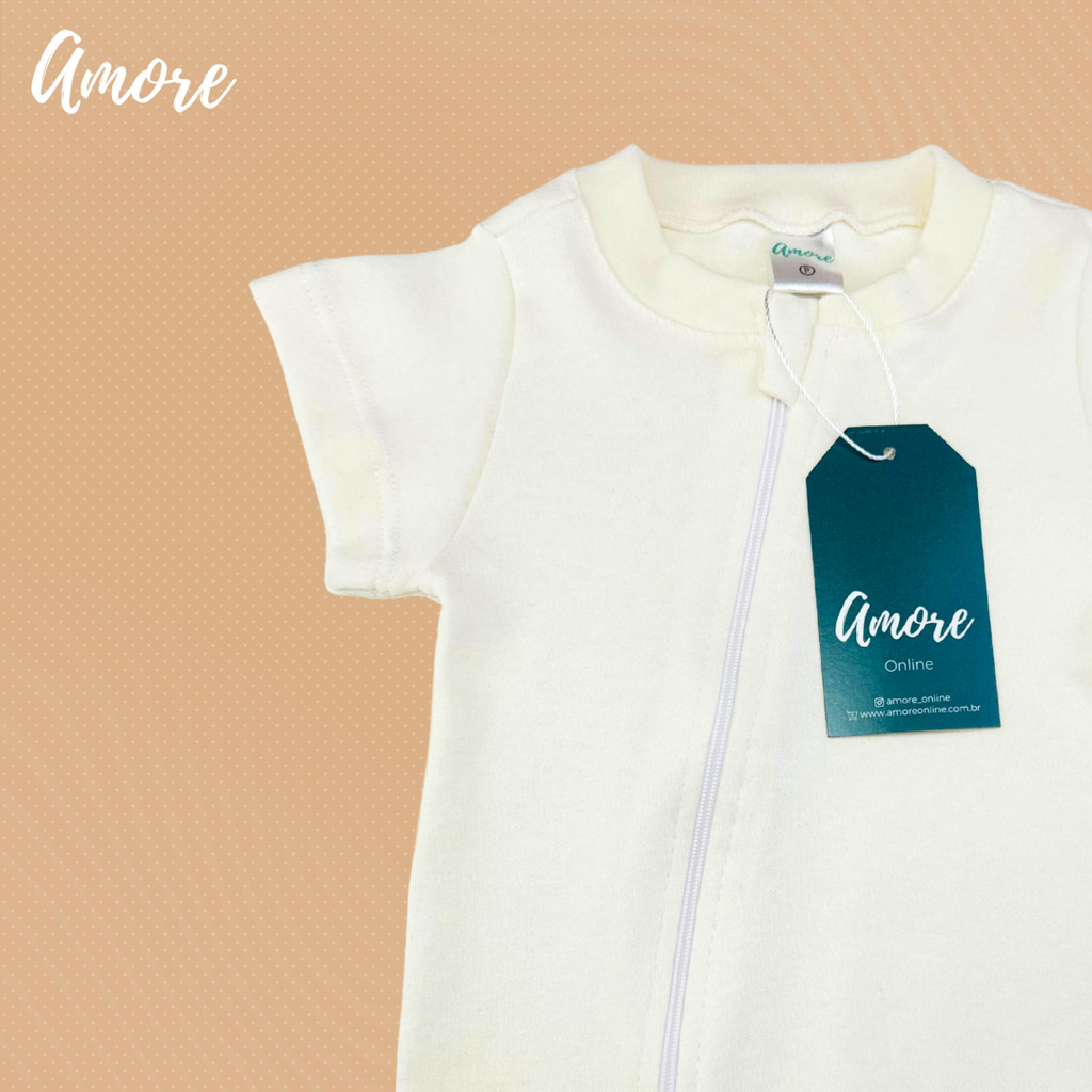 Macacão Bebê Curto Bege - Suedine 100% Algodão