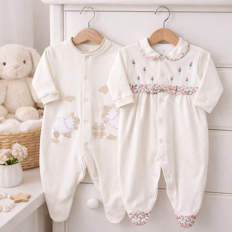 Macacão Bebê Manga Longa com Bordado Saida de Maternidade - P ao G