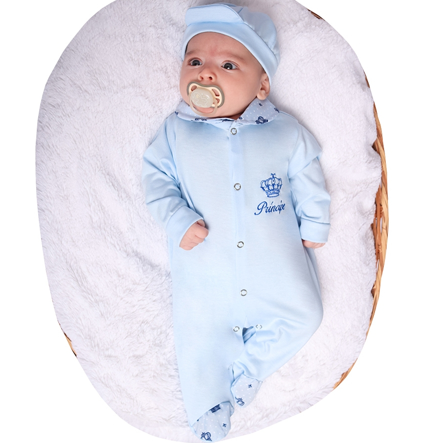 Macacão Bebê Menino Conjunto Manga Longa Com Boné Príncipe 02 Peças tem frete grátis?