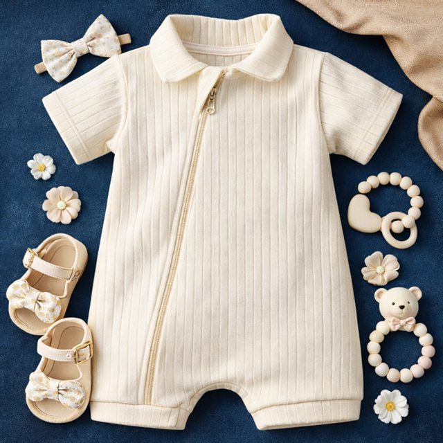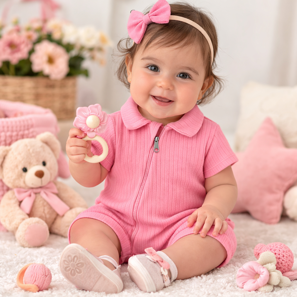 Macacão Bebê Suedine 100% Algodão Canelado com Zíper | Romper Bebê Confortável Verão Menino Menina
