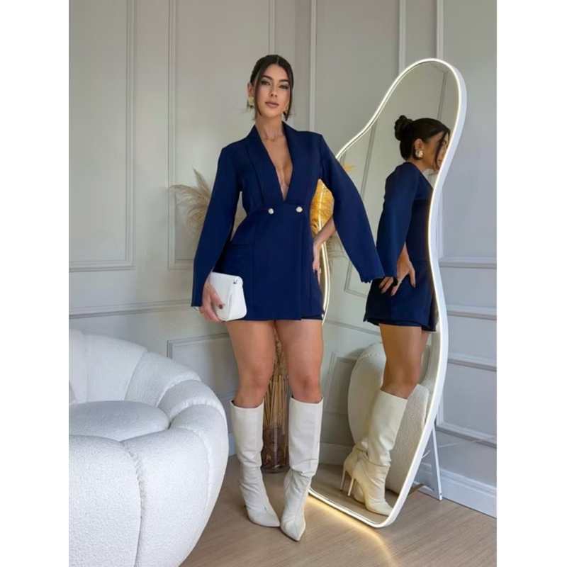 Descrição para anúncio Shopee ✨ Macacão Feminino estilo Blazer Alfaiataria – disponível nos tamanhos P, M e G. Peça elegante e moderna, com modelagem sofisticada que une o charme do blazer à praticidade do macacão. Possui mangas longas, decote profundo em V, fechamento frontal com botões dourados e caimento perfeito que valoriza a silhueta. Ideal para ocasiões especiais, jantares, festas, eventos ou até mesmo para um look fashion no dia a dia. Combine com salto alto ou sandálias e arrase com muito estilo! ✔️ Tamanhos: P, M, G ✔️ Design estilo blazer ✔️ Elegante e confortável ✔️ Tecido de ótima qualidade