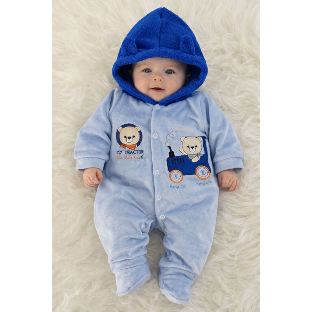Macacão Capuz Touca Bebê Plush Baby Bordado Infantil Menino Inverno