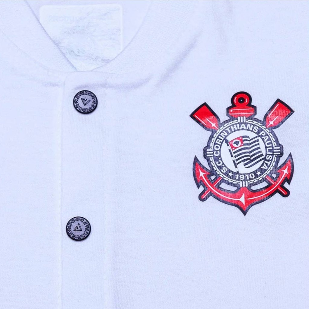 Composição: 100% AlgodãoAbertura: Sim, com botãoCor predominante: BrancoEscudo: EstampadoGênero: UnissexClube: CrinthiansIdade: InfantilManga: CurtaGola: CarecaDimensões aproximadas (A x L):P: 40 x 25 cmM: 42 x 27 cmG: 44 x 29 cm