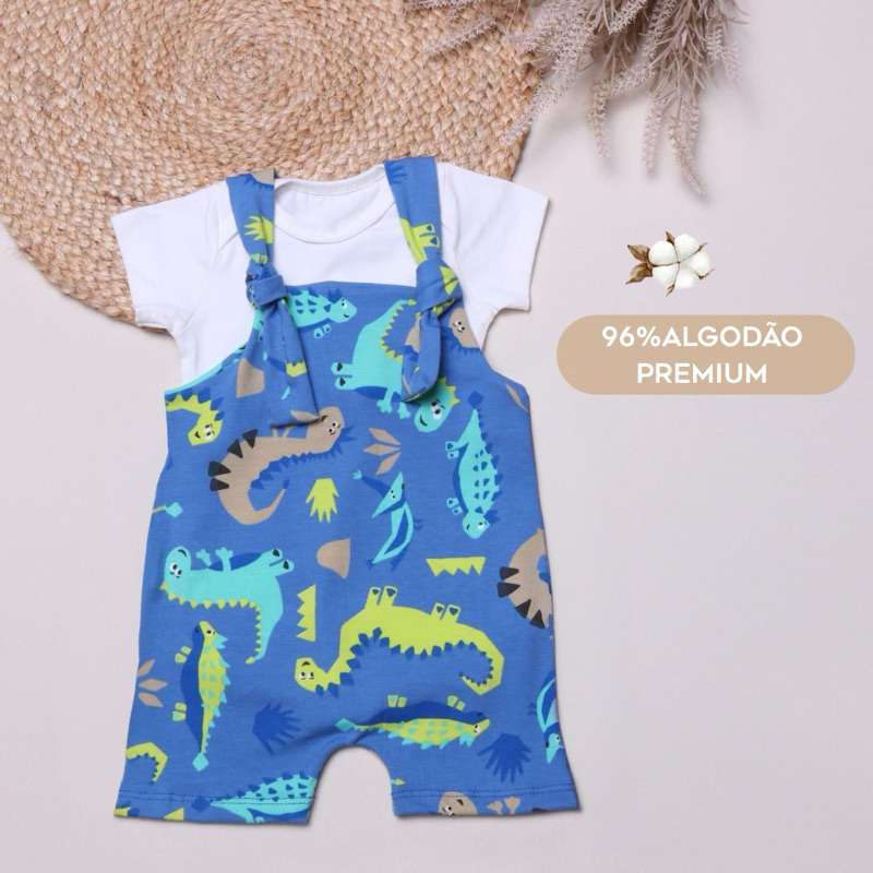 macacão curto bebê menino verão jardineira com body