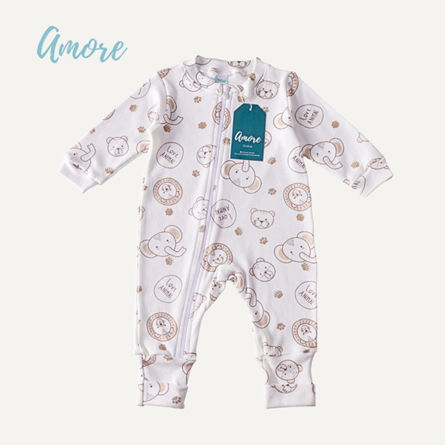 Macacão de Bebê Amore Vira Pé Amiguinhos Com Zíper 100% Algodão