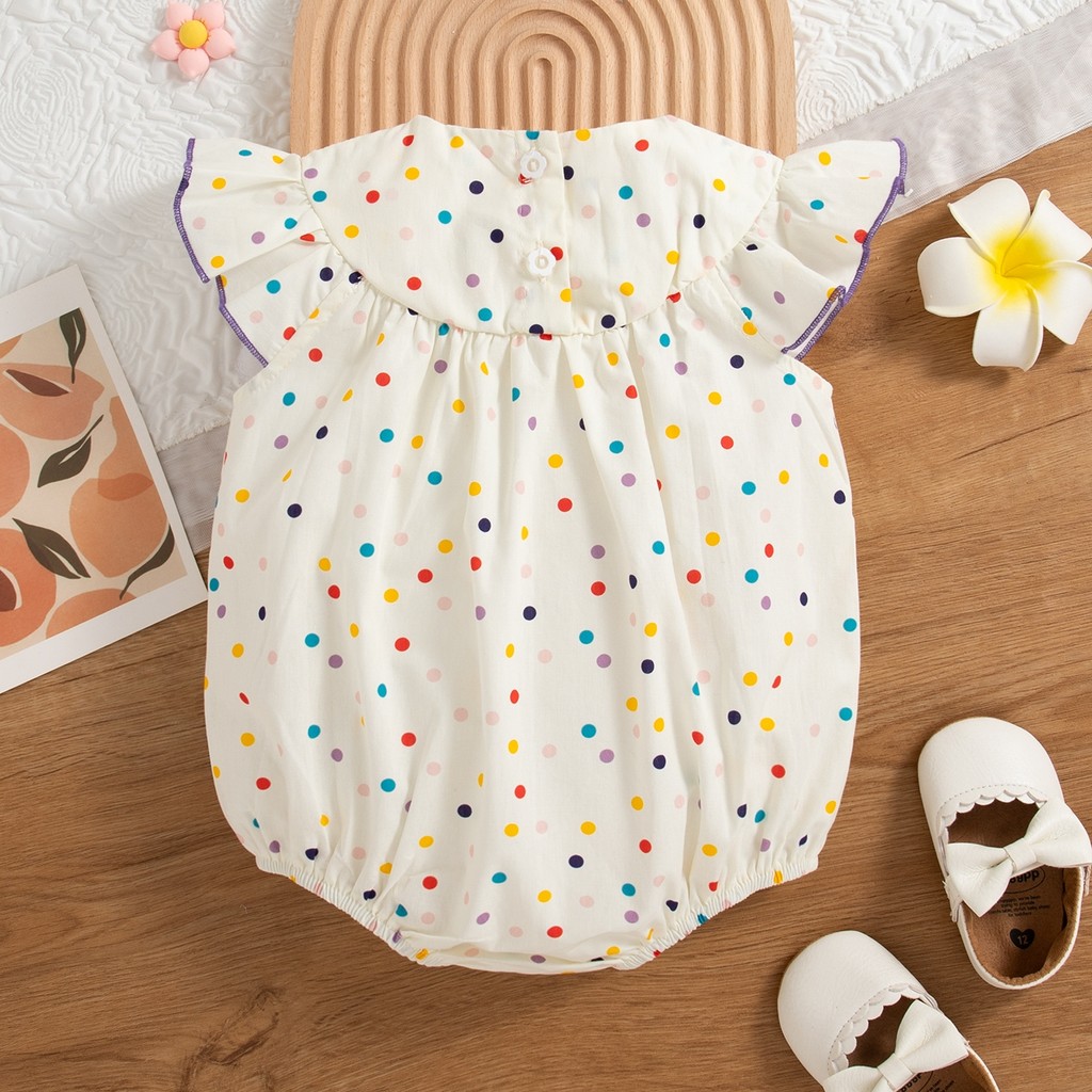 Macacão De Bebê Colorido Bolinhas Flor Bordado Algodão Para