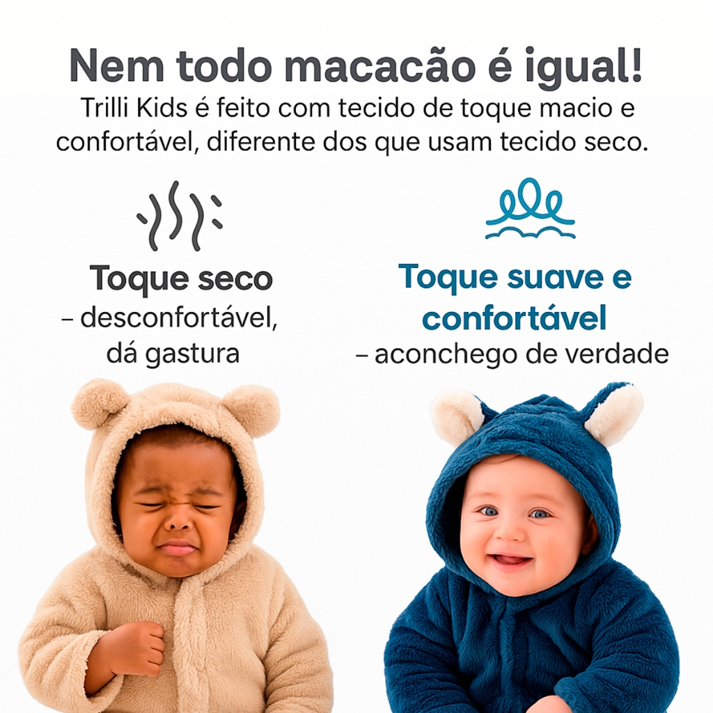 🧸 Macacão Pelúcia Ursinho Trilli Kids Quentinho, macio e pronto para quando o frio chegar Feito em pelúcia Teddy importada, esse macacão mantém o bebê aquecido e confortável em noites frias, quedas de temperatura e ambientes com ar-condicionado. ✔ Proteção térmica sem incomodar ✔ Botões de pressão – troca fácil ✔ Capuz com orelhinhas (fofura garantida) ✔ Unissex | P ao 2 anos | 6 cores 👉 Garanta agora e evite correr atrás quando esfriar. ☀️ USO INTELIGENTE, MESMO FORA DO INVERNO ✔ Madrugadas frias ✔ Ar-condicionado ✔ Viagens ✔ Preparação para o inverno 💡 Comprar antes = mais opções e melhor preço. 🎁 PRESENTE CERTO Um dos itens mais escolhidos para: ✔ Chá de bebê ✔ Mêsversário ✔ Primeiros invernos 👉 Clique em Comprar Agora. 🚨Utilizamos fotos reais do produto no anúncio, porém pode haver pequenas variações de tonalidade dependendo da iluminação da foto, lote do tecido e também da tela do celular ou computador. 📦 ENVIO RÁPIDO 🚚 Envio no mesmo dia útil para pedidos até 12h 📦 Compra segura | Loja bem avaliada 📏 TABELA DE MEDIDAS (RESUMO) P – 1 a 3 meses (com pezinho) M – 3 a 6 meses (com pezinho) G – 6 a 11 meses (com pezinho) 1 – 1 a 2 anos (sem pezinho) 2 – 2 a 3 anos (sem pezinho) ⏰ ESTOQUE LIMITADO Cores e tamanhos esgotam rápido. 👉 Compre agora e garanta o seu.