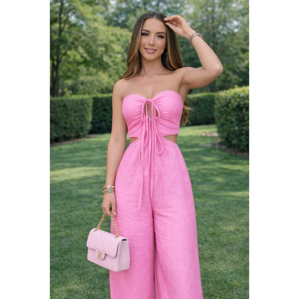 Macacão feminino longo elegante pantalona três formas de uso ideal para todas ocasiões