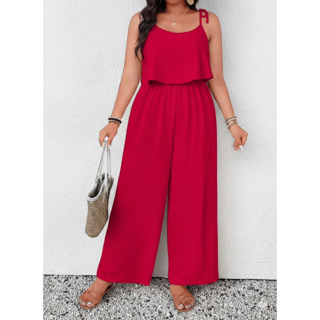 Macacão Feminino Longo Solto Com Babado E Alças Ajustáveis Estilo Pantalona Chic