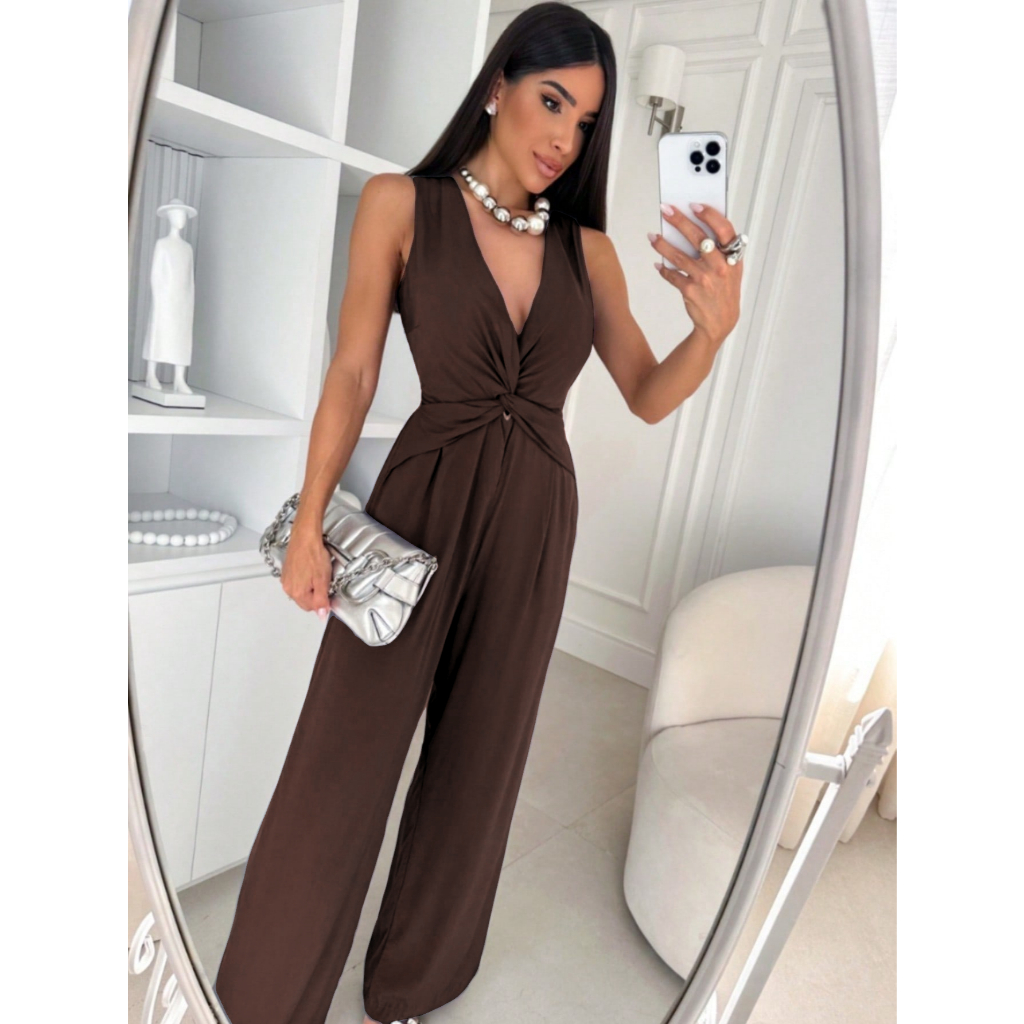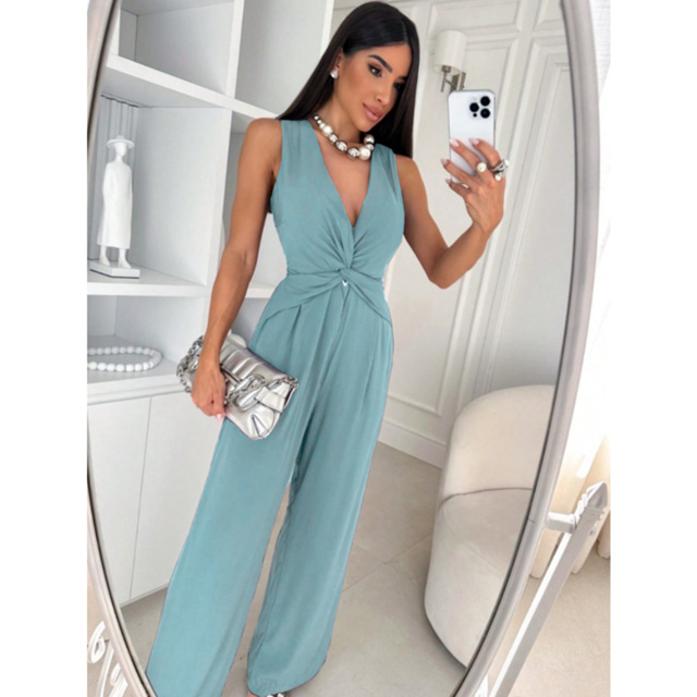 Macacão Feminino Pantalona Decote V Cruzado COD:204-Liso