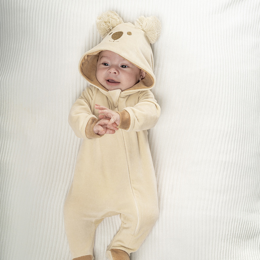 Macacão Fofinho em Plush com Capuz Coala