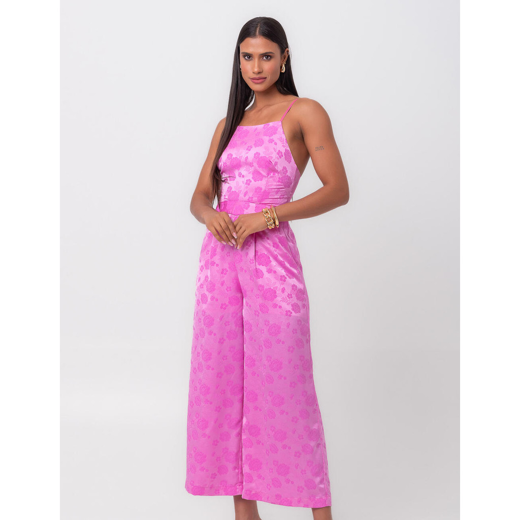 Macacão Jacquard Pantacourt Campo Belo Rosa Pequiá
