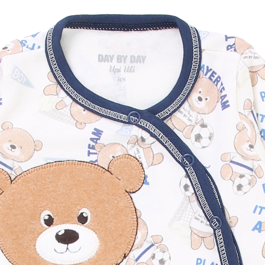 Macacão Longo Bebê Day By Day Suedine Estampa Bordado Ursinho e Bola